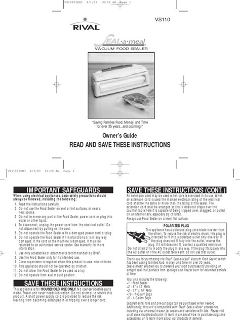 Read Online RIVAL SEAL A MEAL INSTRUCTIONS Reader